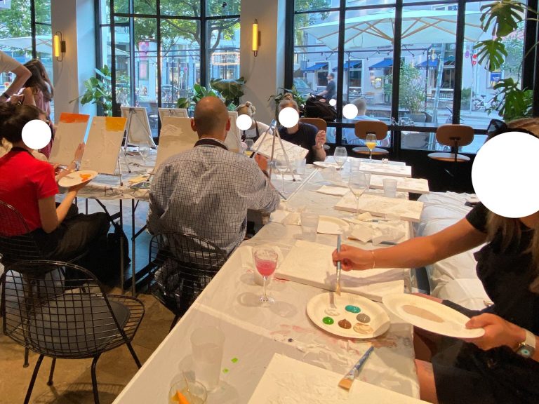 Wer gerne in Gesellschaft kreativ ist, geniest, lacht und neue Leute kennenlernen möchte, kann mit uns eine großartige Zeit erleben. Ihr verbringt mit Euren Freunden, Team, Familie, als Pärchen oder als Single eine besondere und inspirierende Zeit an einem schönen Ort. In der Gruppe von netten Menschen könnt Ihr mit Unterstützung und Anleitung unserer Künstler*in Eurer Kreativität freien Lauf lassen und ein wunderbares, ganz persönliches Kunstwerk erschaffen, welches Euch als bleibende Erinnerung bereichern wird.